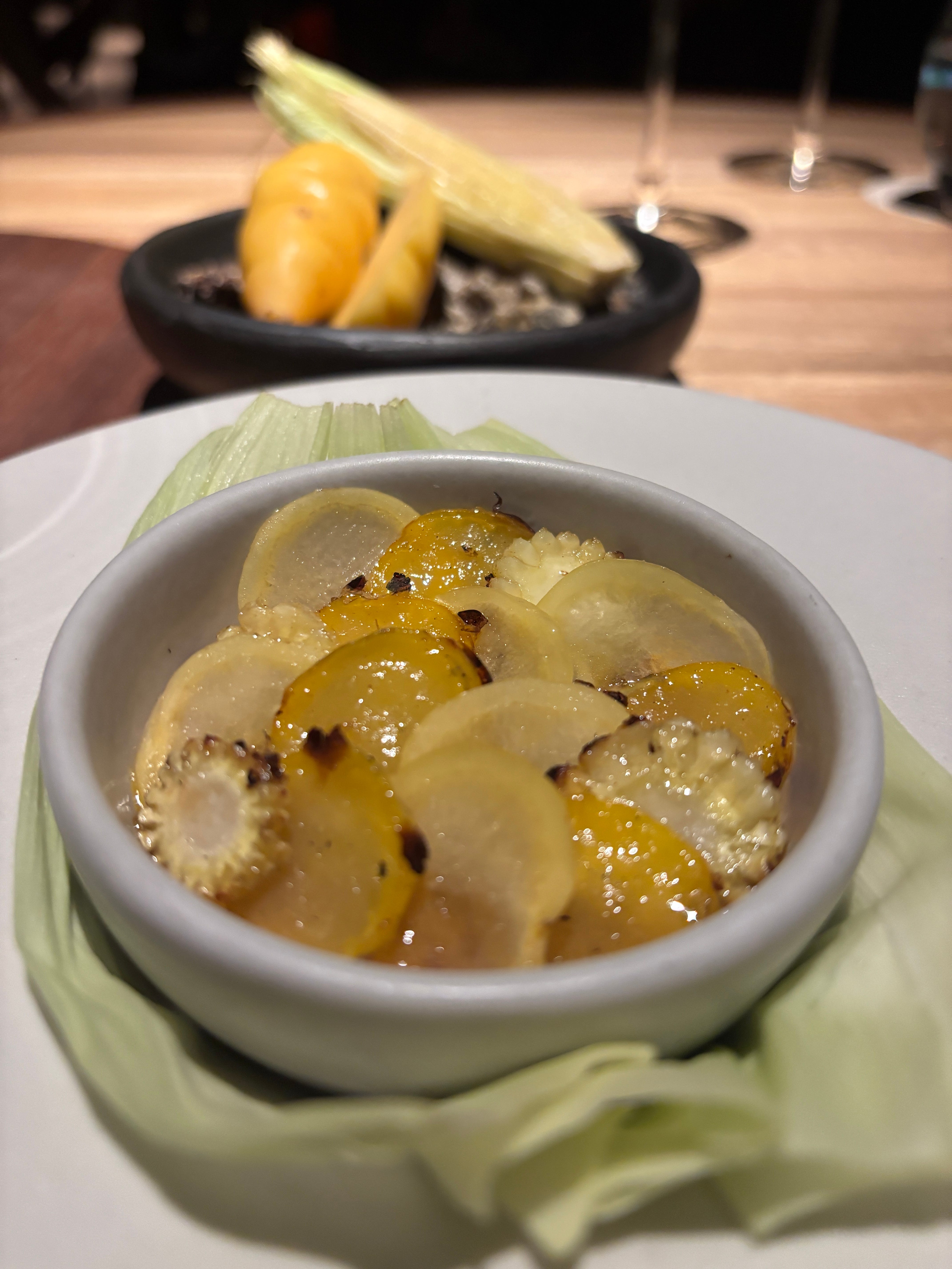 Chef Álvaro Clavijo’s new tasting menu reads like a love letter to Colombian ingredients: cubio, guasca, chontaduro, zapote, mambe. Most I’d never even heard of. With each course, the servers place the raw ingredients on the table beside the finished dish, a kind of edible show-and-tell, especially helpful when you're tasting something you didn’t even know existed.