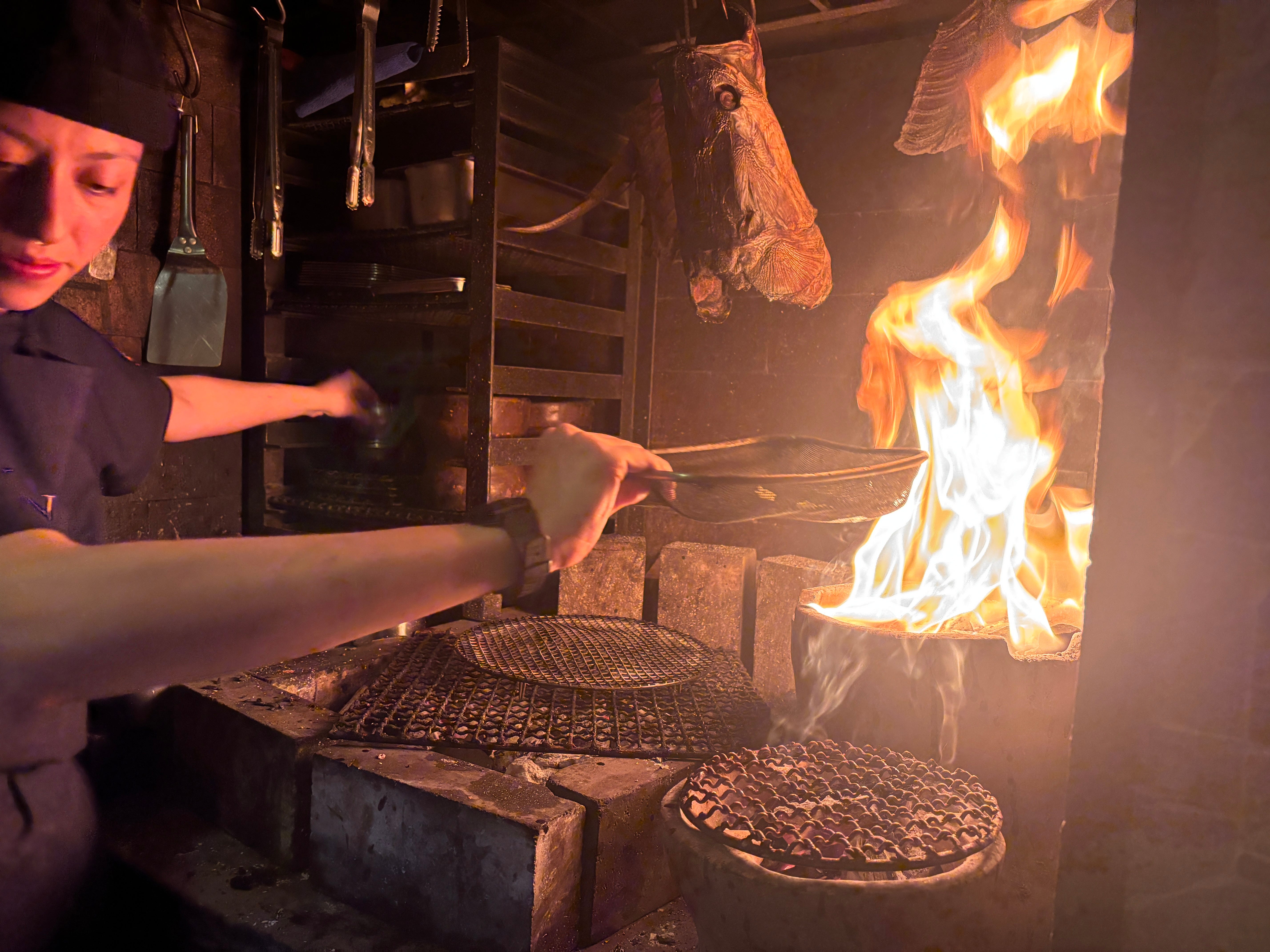 The restaurant pulses with personality: walls filled with art from local artists Jaime trades with—he feeds them, they give him pieces. That spirit of exchange runs through everything here. Before opening Humo Negro, Jaime was head chef at El Chato, and staged at places like Faviken, Grace in Chicago, and Atelier Crenn. You can taste that training and curiosity in the dishes—sharp knife work, layered flavors, smart ideas.
