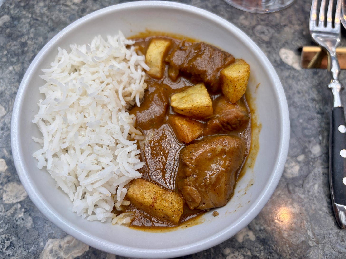 There were ten courses, with standouts like sago shakarkandi chaat, aguachile de cangrejo with smoky corn and cubio, sticky rice with guanábana, and a tender lengua with pepper and hearts of palm. But the curry—rich, layered, unapologetically bold—was the heart of it. Before serving it, Gaggan circled the dining room asking what size we wanted: small, medium, or large? I’d been to Gaggan before, so I knew the drill. There’s only one answer: large, obvioooooo.